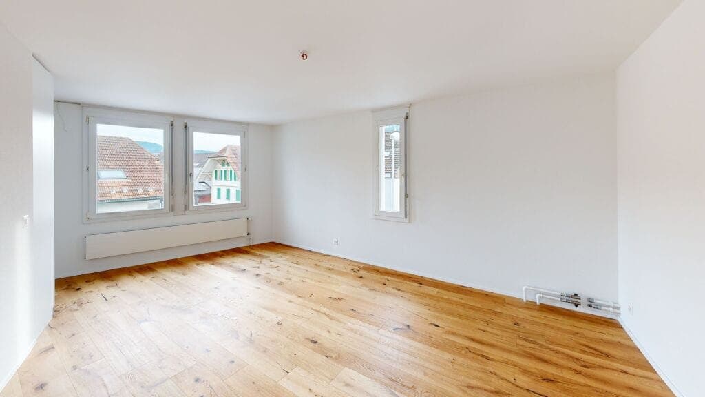 Erstbezug nach Kernsanierung 2025: Diese 3.5-Zimmer-Wohnung im 3. OG eines gepflegten 8-Parteienhauses an der Karl-Mathystrasse 54 in Grenchen verbindet klare Linien, Eichenparkett und eine elegante, dunkle Küche mit einem durchdachten Grundriss. Helle Räume, Balkon und die ruhige, sonnige Lage in kinderfreundlicher Umgebung sorgen für hohen Wohnkomfort.Das Wichtigste im Überblick3.5-Zimmer, ca. 57 m² Wohnfläche3. Obergeschoss (ohne Lift) in 8-ParteienhausErstvermietung nach Kernsanierung 2025Balkon für entspannte Stunden im FreienUmweltfreundliche Fernwärme, RadiatorenInnenausbauDurchgehend verlegter EichenparkettHelle, gut geschnittene ZimmerEinbauschränke/Wandschränke für praktischen StauraumDesignküche in mattem Anthrazit (U-Form) mit LED-SpotsHochgebauter Backofen, Glaskeramikkochfeld, viel ArbeitsflächeLage & MobilitätRuhige, sonnige Wohnlage in Grenchen; kinderfreundliches UmfeldLeichte Hanglage mit schöner BesonnungBahnhof Grenchen Nord ca. 934 mA5-Anschluss Lengnau ca. 2.3 kmFlughafen Grenchen ca. 2.8 kmMiete & VerfügbarkeitNettomiete CHF 1350.- zzgl. NK CHF 200.- (Bruttomiete CHF 1550.-)Bezug ab 01.03.2026Aussenparkplätze und Garagenboxen nach Verfügbarkeit dazumietbarVirtuelle Besichtigung verfügbarIdeal für Singles, Paare oder kleine Familien, die in Grenchen modern und komfortabel wohnen möchten.