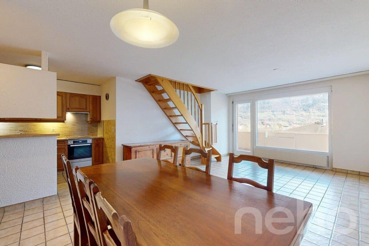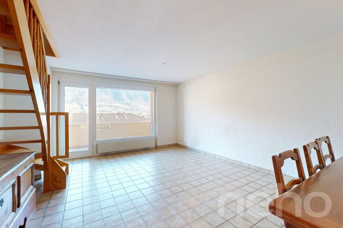 Découvrez ce spacieux appartement de 3.5 pièces, agrémenté d'une pièce supplémentaire en duplex avec mezzanine, véritable atout qui confère à ce bien un caractère unique. Cet espace polyvalent, idéal comme bureau, chambre d'amis ou coin détente, bénéficie d'une vue dégagée sur les montagnes environn...