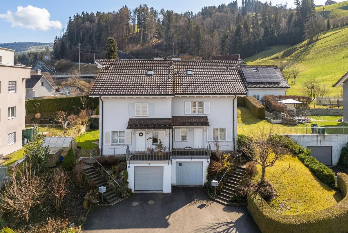 In ruhiger und dennoch zentraler Wohnlage befindet sich dieses sehr gepflegte Doppeleinfamilienhaus mit optimaler Besonnung und schönem Blick zur Iburg. Das praktische Haus erstreckt sich über vier Geschosse und überzeugt mit hellen, grosszügigen Räumen sowie einem durchdachten Grundriss. Auf jedem ...