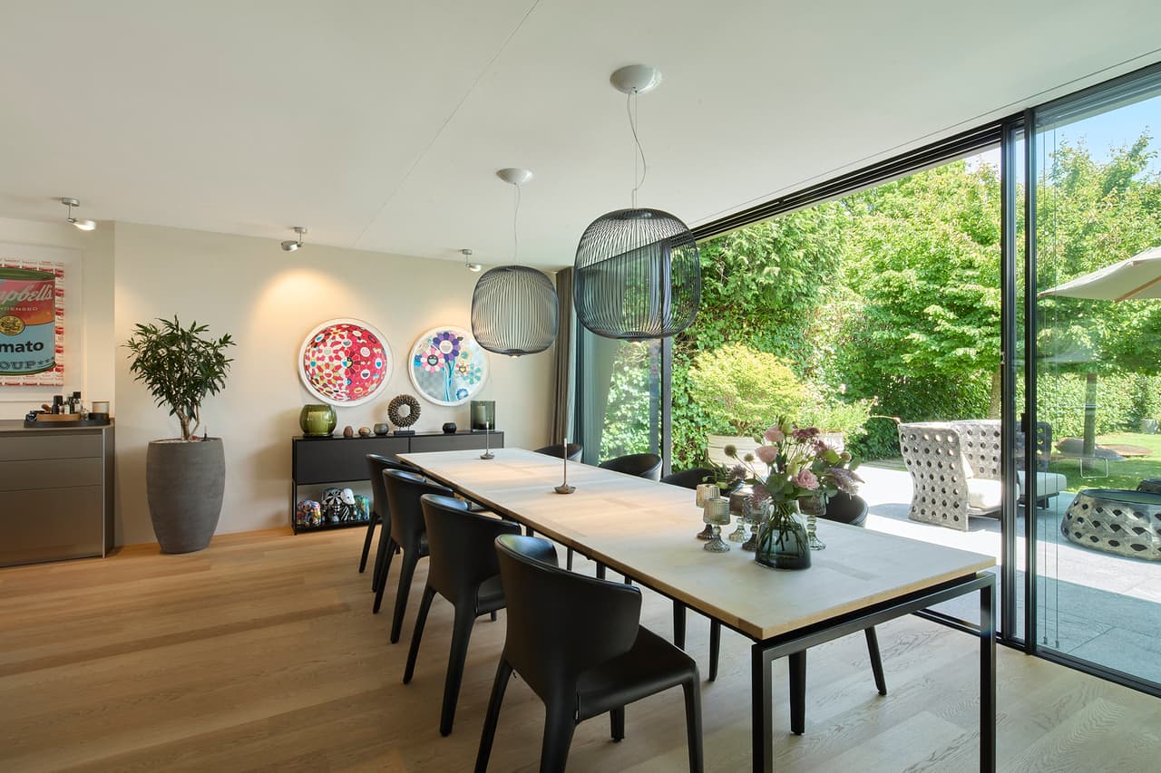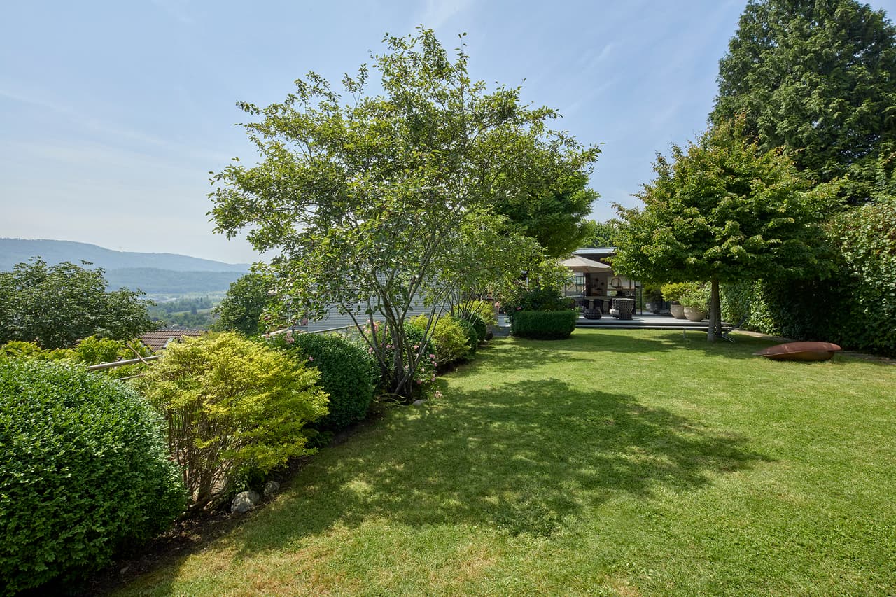 Diese traumhafte Villa ist eine wahre Oase der Inspiration. Der wunderschöne Hauptgarten gewährt eine perfekte Privacy. Der grosse Sitzplatz mit feinsten Natursteinplatten verbindet sich harmonisch mit dem futuristisch wirkenden Esszimmeranbau. Dessen Sky-Frame-Fenster sorgen für eine visuell nahezu...