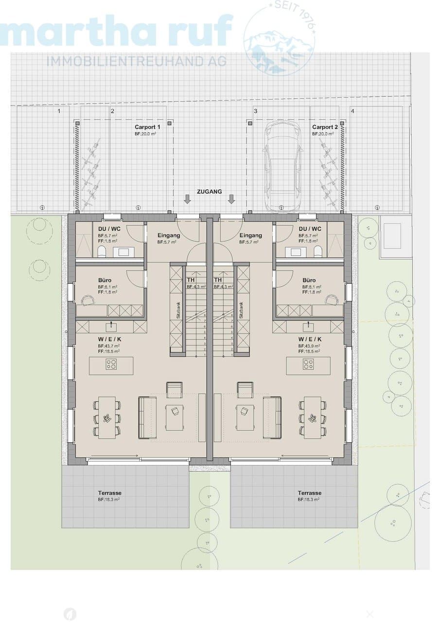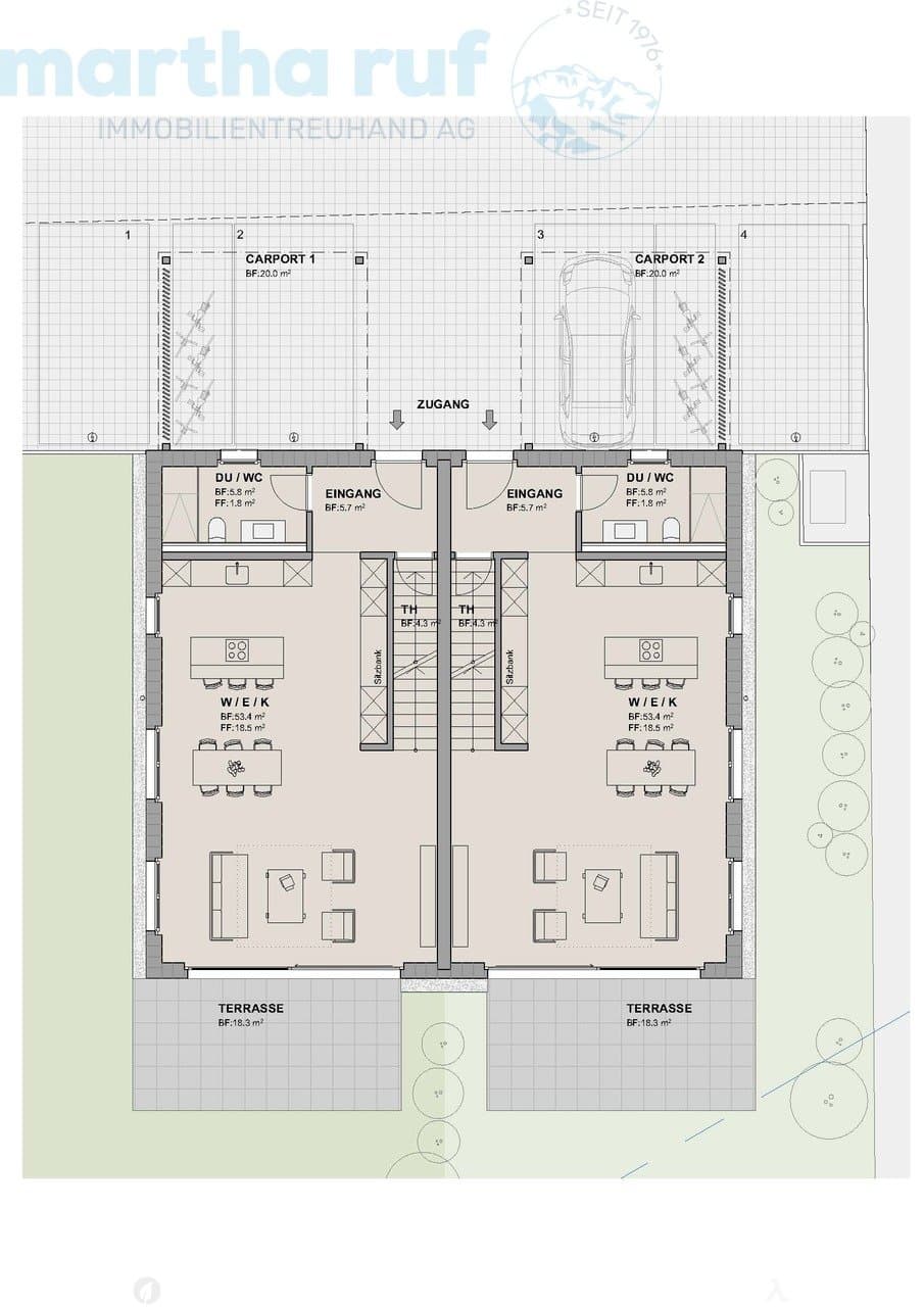 An der Weissenaustrasse 18 in Unterseen entsteht ein exklusives Doppeleinfamilienhaus mit 4.5 bis 5.5 Zimmern. Jede Haushälfte überzeugt mit einem offenen, lichtdurchfluteten Wohn- und Essbereich, einer modernen Küche sowie grosszügigen Fensterfronten mit spektakulärer Bergsicht.Elegantes Design, ho...