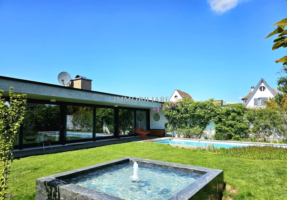 Diese Architektenvilla im Mid-Century-Stil vereint authentische Gestaltungselemente der Bauzeit mit einer hochwertigen Ausstattung und modernen energetischen Standards. Umfassende Sanierungen wurden 2010 und 2019 durchgeführt. Der ganzjährig nutzbare Swimmingpool ist mit eigener Wärmepumpe sowie Geg...