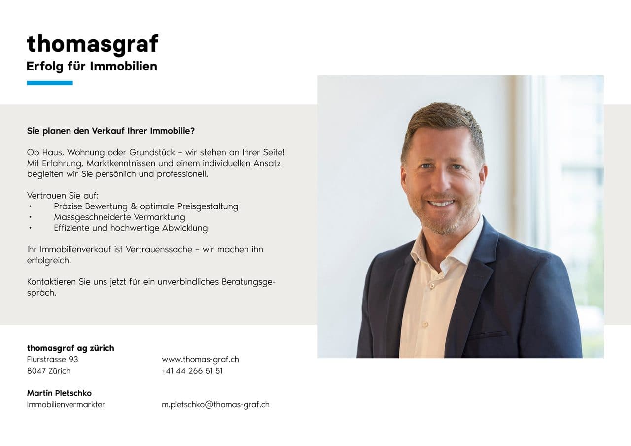 Im Verkaufspreis inbegriffen sind:1 Tiefgaragenplatz2 Aussenparkplätze (in unmittelbarer Nähe zum Haupteingang)Ein zusätzlicher Mehrwert: Die Wohnung kann bei Bedarf in eine 4.5-Zimmer-Wohnung umgebaut werden - ein attraktives Zukunftspotenzial !Die gepflegte Wohnüberbauung wurde im Jahr 1982 in mas...