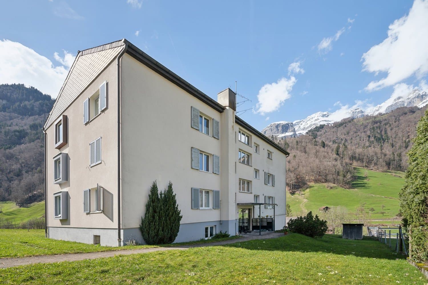Bergpanorama und Flussidylle in Hätzingen – 4.5-Zimmer-EigentumswohnungInmitten der Glarner Bergwelt, im Dorfteil Hätzingen der Gemeinde Glarus Süd, steht diese gut unterhaltene 4.5-Zimmer-Eigentumswohnung zum Verkauf. Ob als Anlageobjekt oder zur späteren Selbstnutzung – die Wohnung überzeugt mit g...