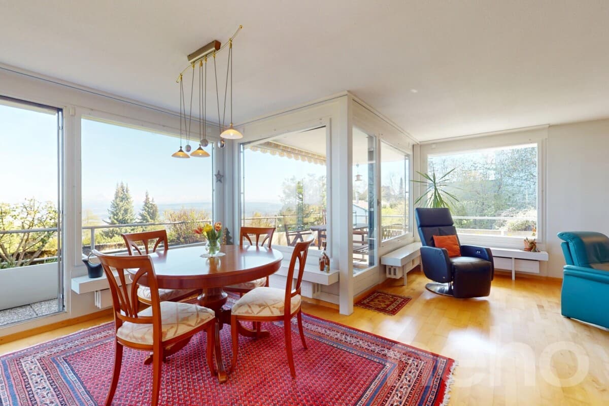 Découvrez ce bel appartement de 5,5 pièces, alliant espace, luminosité et calme, idéalement situé au c?ur d'Evilard, charmante commune dominant Bienne.Au deuxième étage d'un immeuble de quatre niveaux, ce bien rare offre environ 120 m² de surface pondérée, avec quatre chambres, deux salles de bains ...