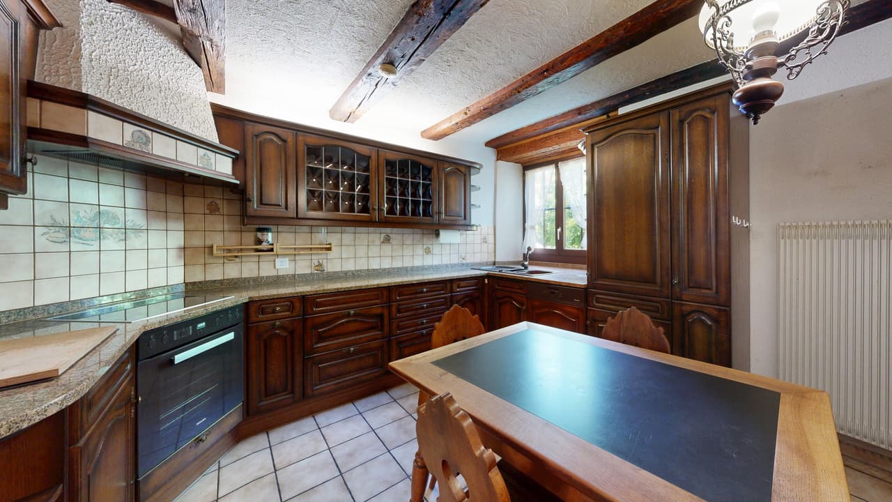 Dieses Bauernhaus überzeugt mit der zentralen Lage, Charme und dem grossen Raumangebot.Es bietet Ihnen folgendes:Wohnzimmer mit Kachelofengemütliches Esszimmer2 Küchen (nur eine vollständig ausgestattet)2 Badezimmer (Dusche und Badewanne)4 ZimmerReduitTerrasseweitläufiger Garten mit Sitzplatzzweistö...