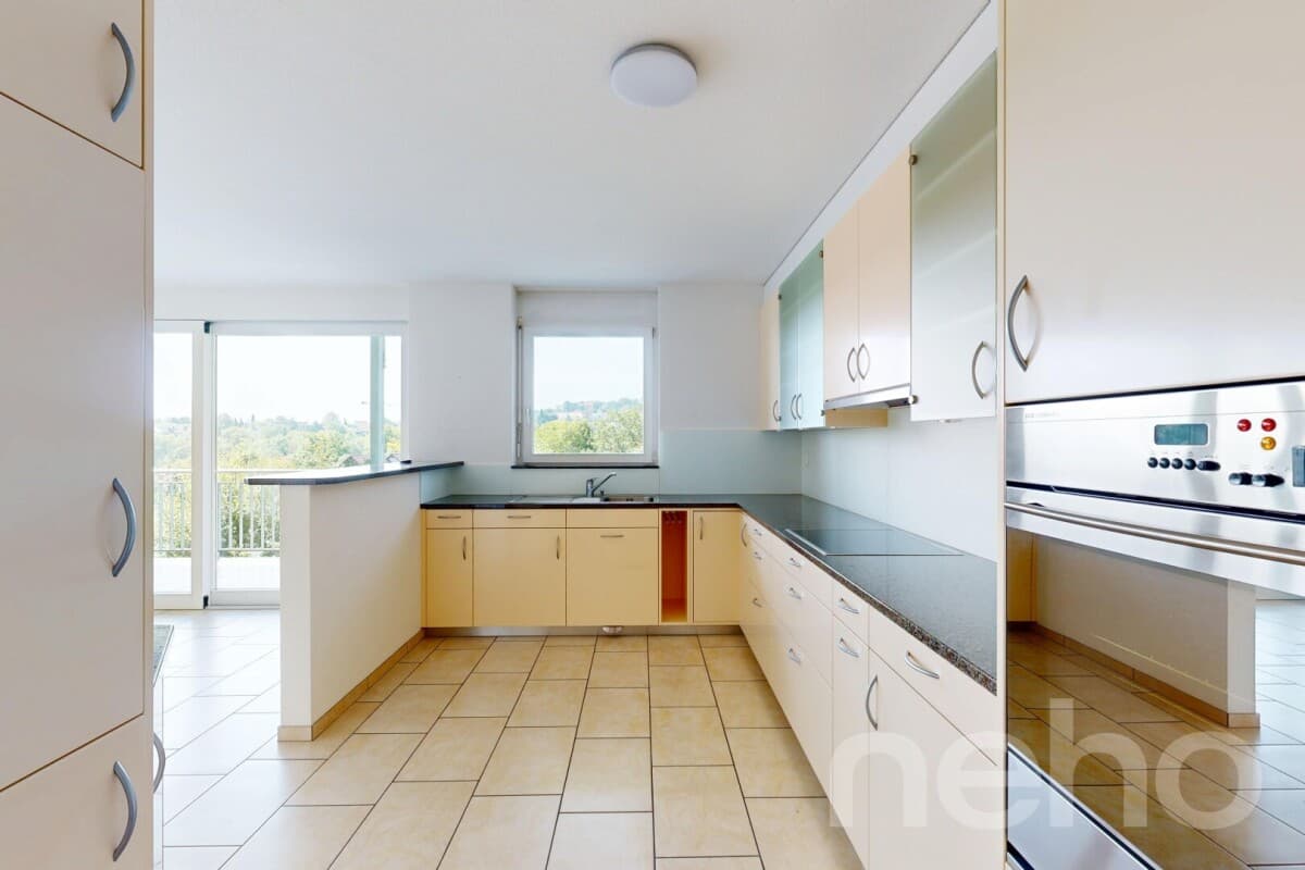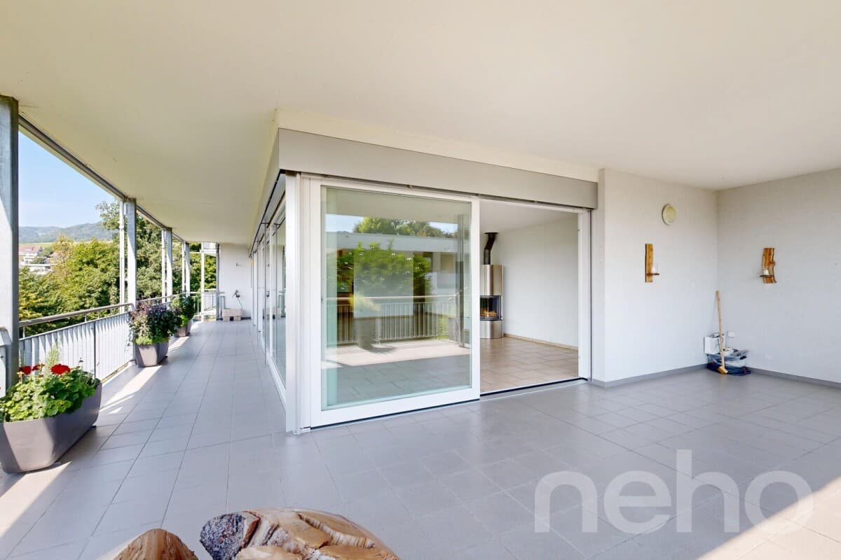 Diese aussergewöhnliche Wohnung begeistert mit 170 m² Nettowohnfläche und einer 55 m² grossen Terrasse, die einen traumhaften Weitblick eröffnet. Der lichtdurchflutete Wohnbereich mit stilvollem Schwedenofen schafft eine behagliche Atmosphäre und geht nahtlos in die moderne, offen gestaltete Küche ü...
