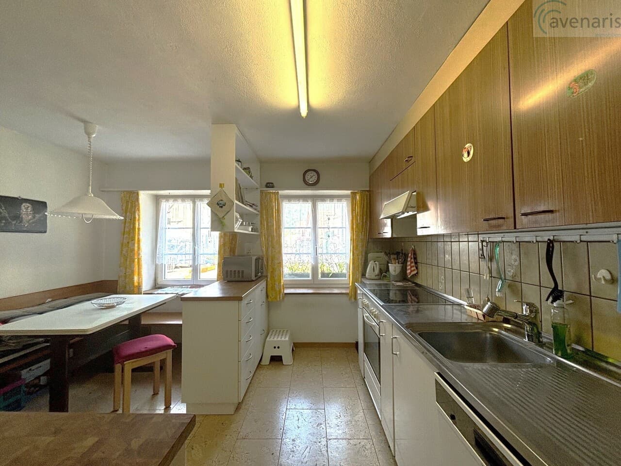 Zum Verkauf steht eine Liegenschaft, die ursprünglich aus zwei separaten Häusern bestand, und zu einem grosszügigen Reiheneinfamilienhaus zusammengelegt wurde. Der Umbau hat ein Raumangebot mit vielseitigen Gestaltungsmöglichkeiten geschaffen.Im Erdgeschoss gelangen Sie durch den Flur in die Diele, ...