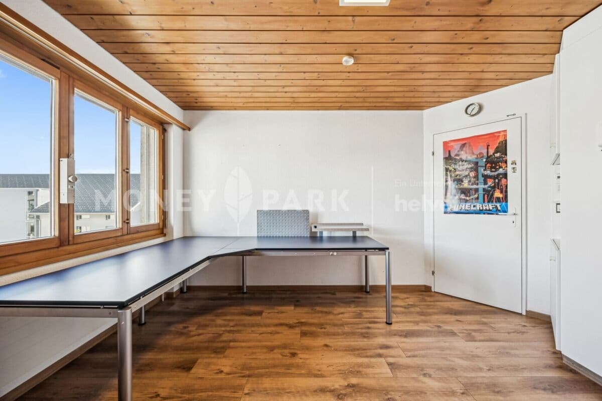 Highlights Ansprechender GrundrissGepflegter InnenausbauRaumwunderLift vorhandenGedeckter BalkonSchwedenofenWaschraum mit Sauna Zusätzliche Räumlichkeiten und Ausbaureserve 1x TiefgaragenparkplatzRuhige, familienfreundliche LageDiese aussergewöhnliche 5.5-Zimmer-Maisonette-Dachwohnung bietet auf run...