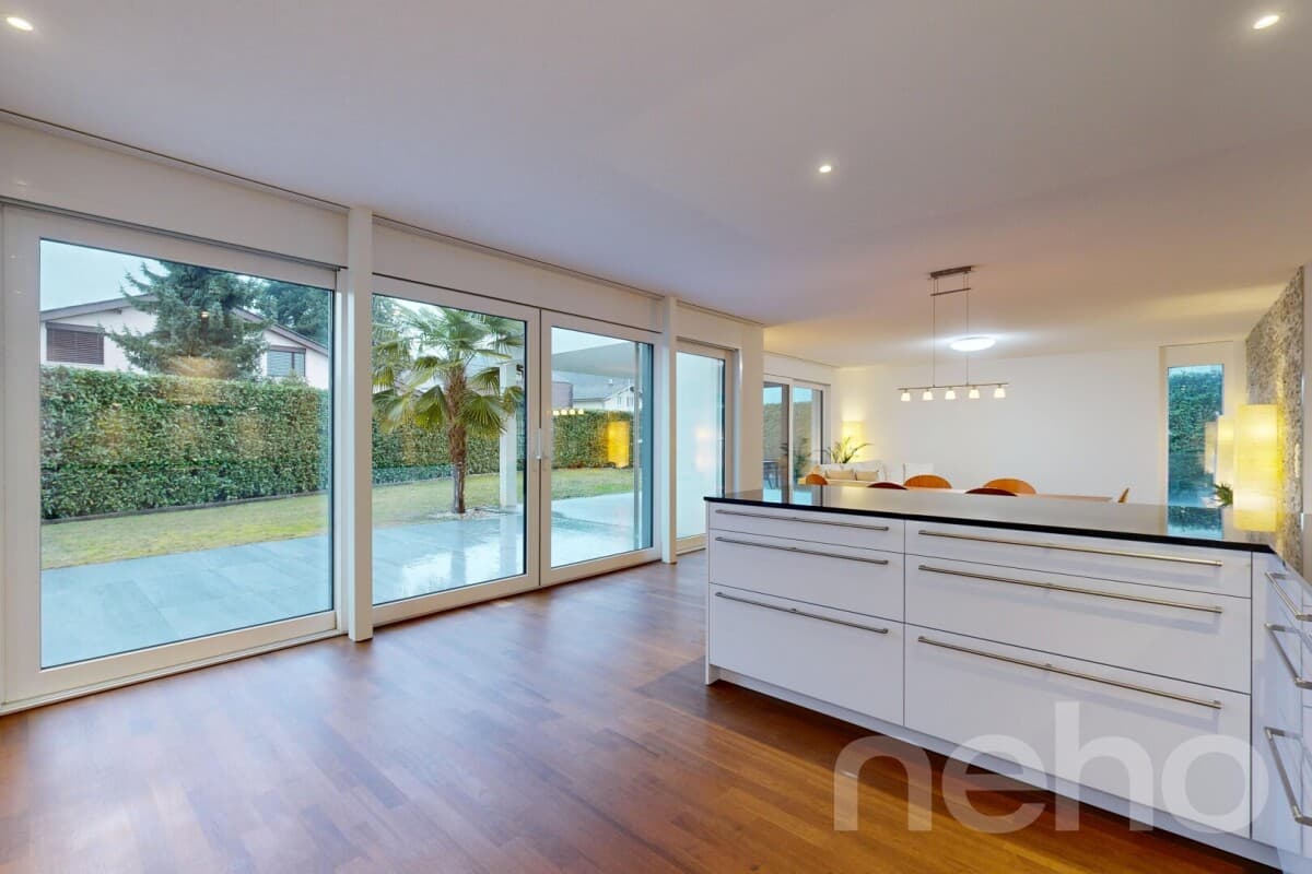 Dieses im Jahr 2015 erstellte 6.5-Zimmerhaus begeistert mit 200 m2 Nettowohnfläche, zeitgemässem Ausbaustandard sowie hervorragender Infrastruktur. Das Raumkonzept überzeugt durch Grosszügigkeit, klare Linienführung und lichtdurchflutete Bereiche dank grosszügiger Fensterfronten. Herzstück bildet di...
